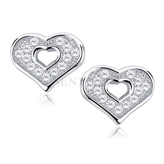 Silver (925) heart earrings with zirconia