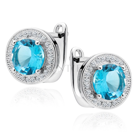 Silver (925) earrings with round aquamarine zirconia