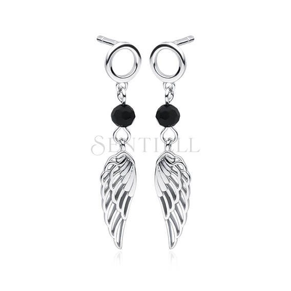 - Silver (925) earrings wings with black spinels