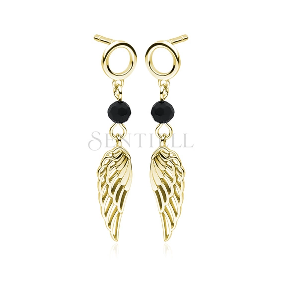 Silver (925) gold-plated wings earrings with black zirconia / spinel
