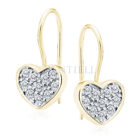 Silver (925) gold-plated earrings - hearts with white zirconias