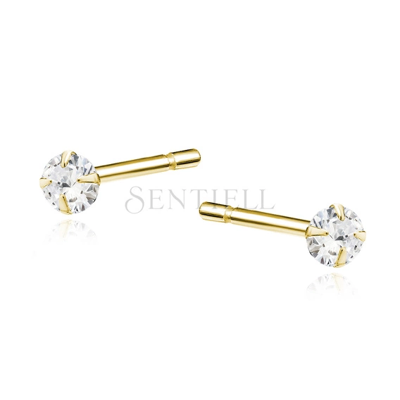 Silver (925) gold-plated earrings round white zirconia diameter 3mm