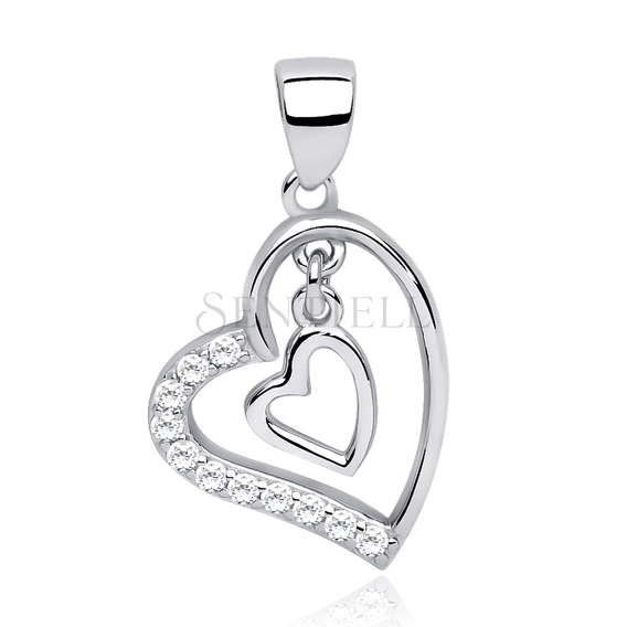 Silver (925) pendant white zirconia - heart in heart