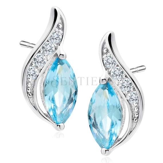Silver (925) elegant earrings with aquamarine marquoise zirconia