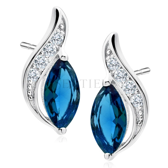 Silver (925) elegant earrings with sapphire marquoise zirconia