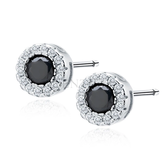 Silver (925) elegant round earrings with black zirconia