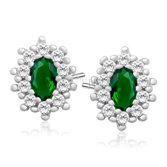 Silver (925) Earrings emerald colored zirconia