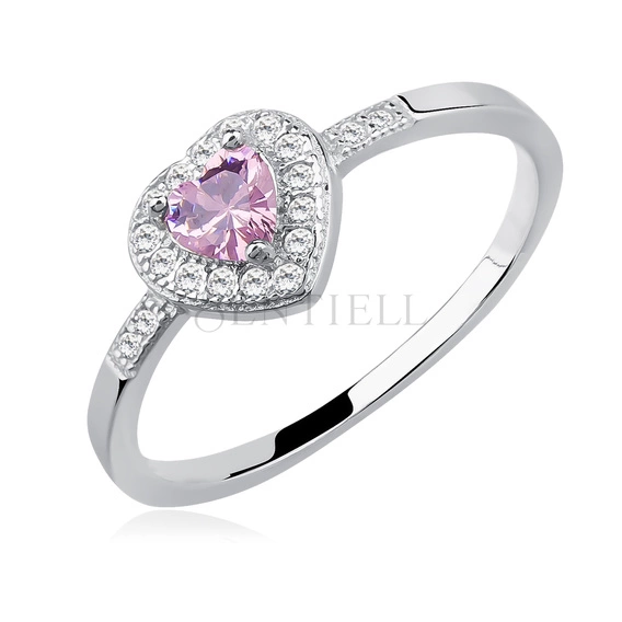 Silver (925) heart ring with light pink zirconia