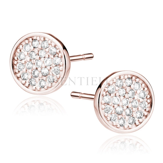 Silver (925) elegant round earrings with zirconia, rose gold-plated
