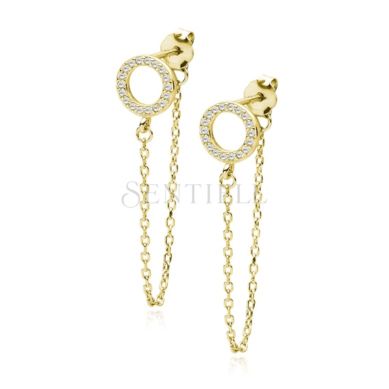 Silver (925) rose gold-plated earrings - circles with zirconias and chain
