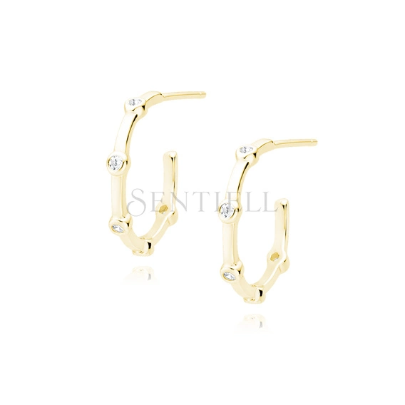 Silver (925) gold-plated earrings open hoop with white zirconias