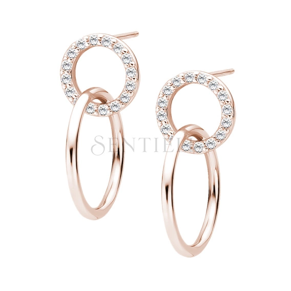 Silver (925) rose gold-plated earrings - circles with white zirconias
