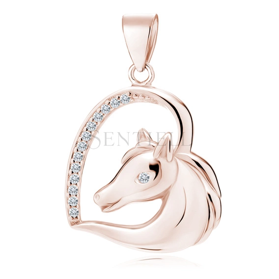 Silver (925) rose gold-plated heart pendant - horse with white zirconias