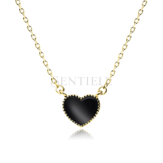 Silver (925) gold-plated necklace - heart with black enamel