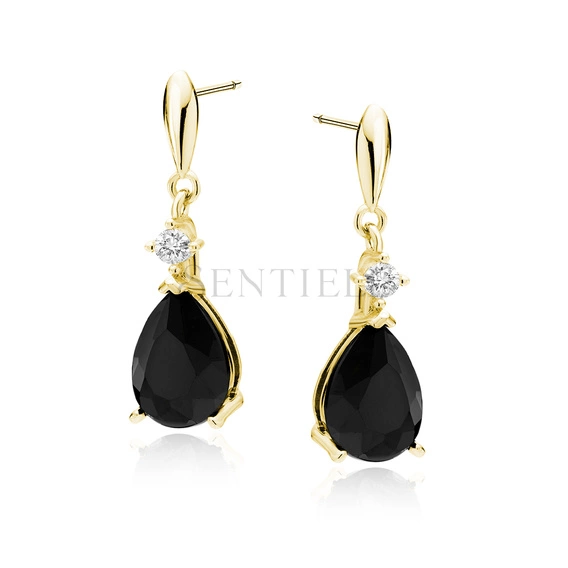 Silver (925) gold-plated earrings with black zirconia - teardrop