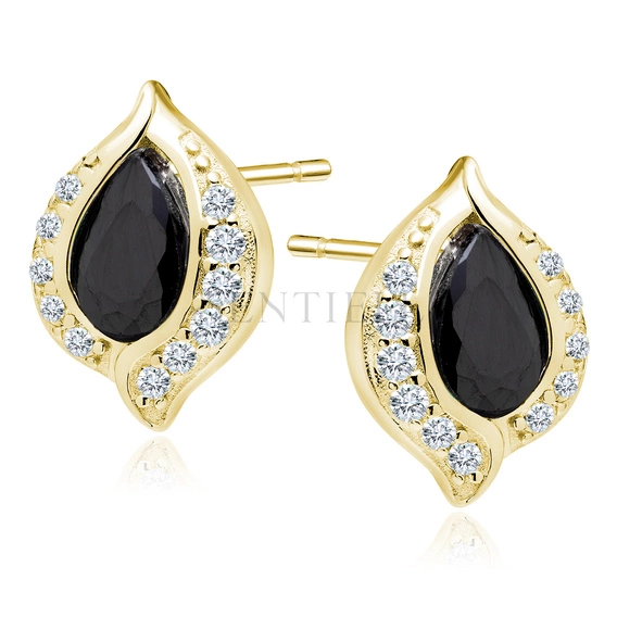 Silver, gold-plated, delicate earrings (925) black drop with white zirconias