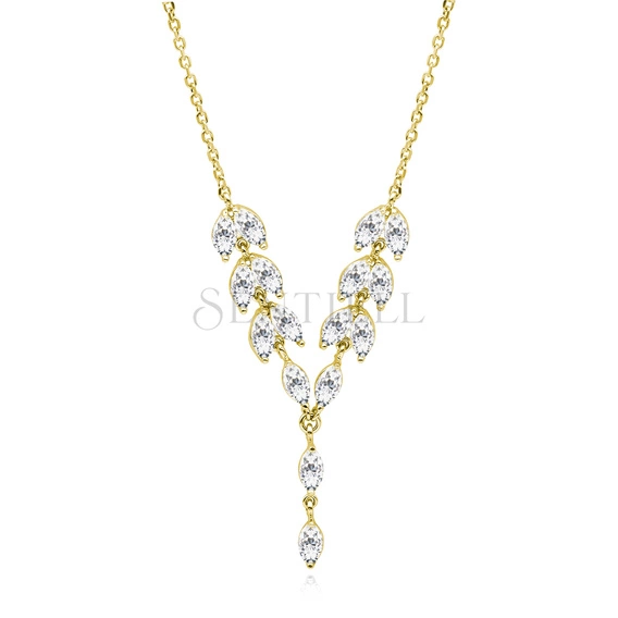 Silver (925) stylish, bridal, gold-plated necklace with zirconia