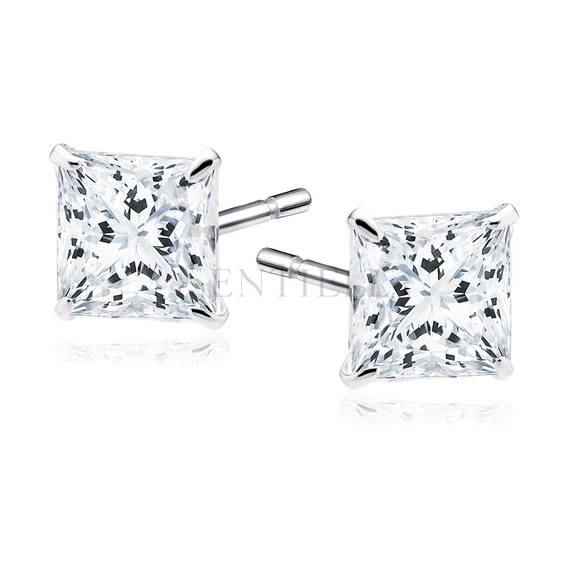 Silver (925) rhodium-plated earrings white zirconia 5 x 5mm square