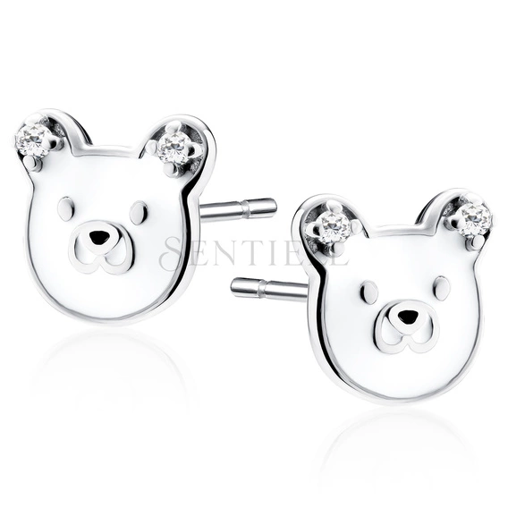 Silver (925) enameled earrings - bears with white zirconias