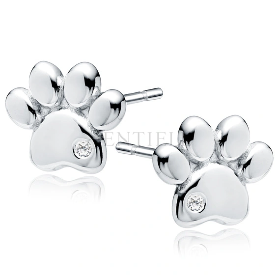 Silver (925) earrings - dog / cat paw with white zirconia