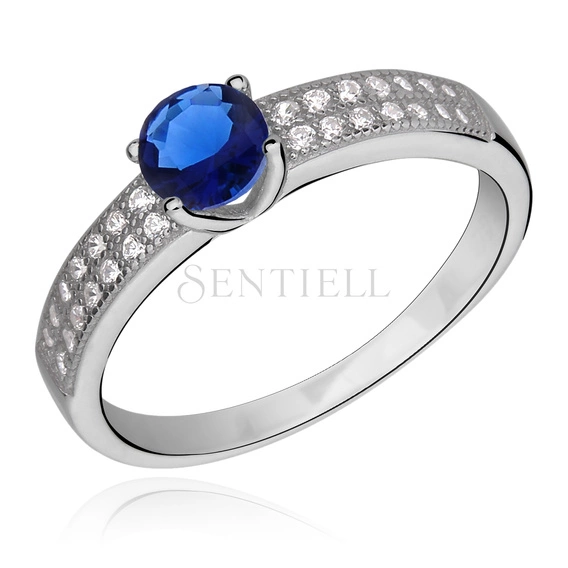 Silver (925) ring with sapphire & white zirconia
