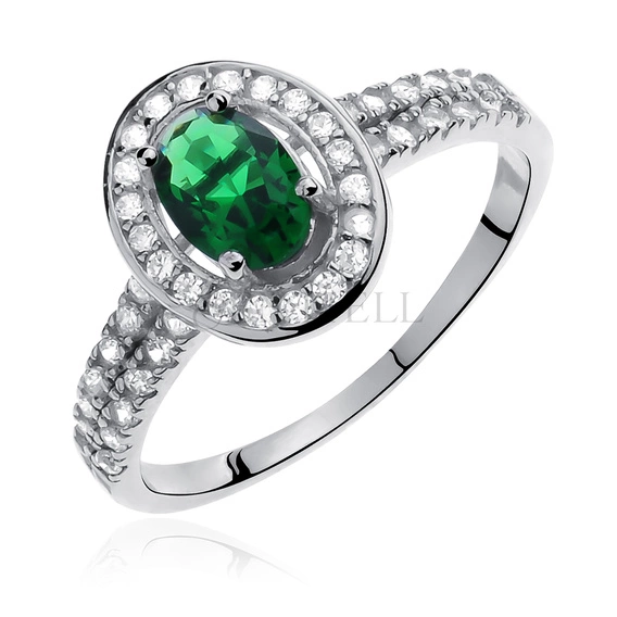 Silver (925) ring with emerald colored & white zirconia