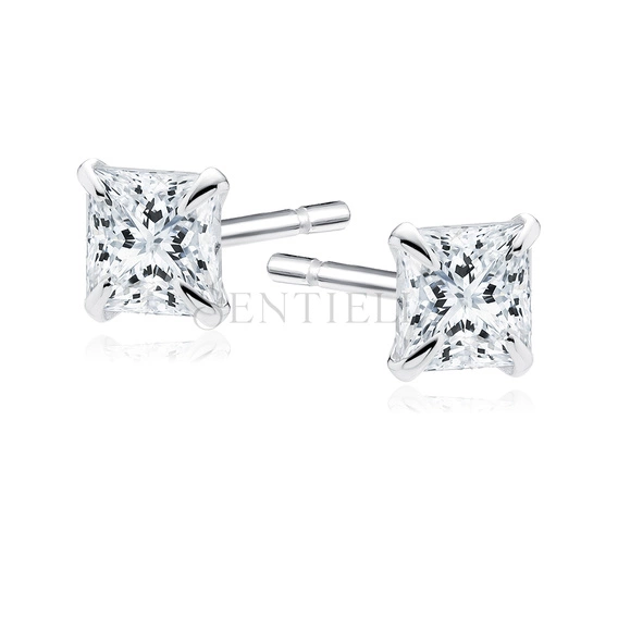 Silver (925) earrings white zirconia 3 x 3mm square
