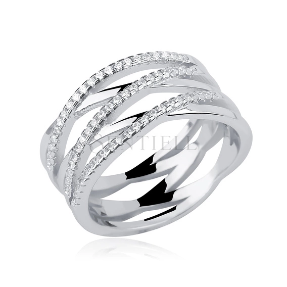 Anillo cruzado de plata de ley 925 con circonitas blancas