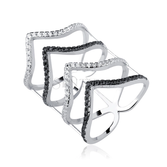 Anillo de plata de ley 925 con circonitas blancas y negras