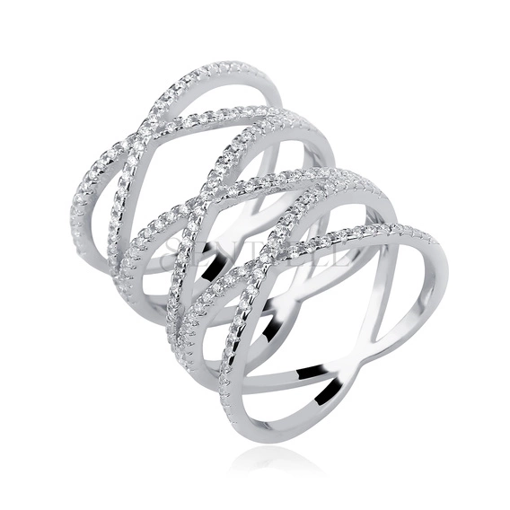 Anillo cruzado de plata de ley 925 con circonitas blancas