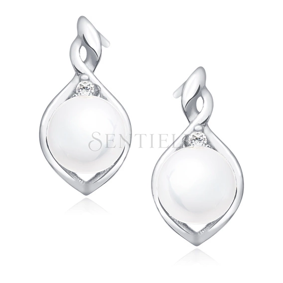 Pendientes de Plata de ley 925 con perla blanca y circonita
