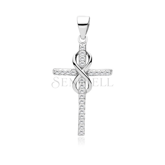 Colgante cruz de Plata de ley 925 con circonitas y símbolo de infinito