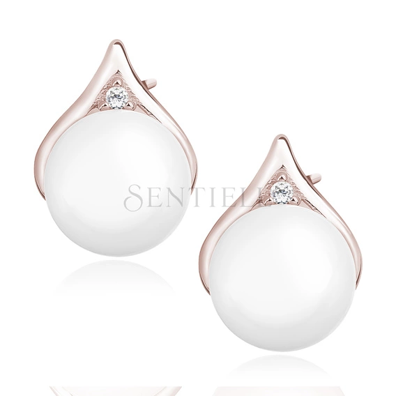 Pendientes de perlas de plata de ley 925 con circonitas chapados en oro rosa