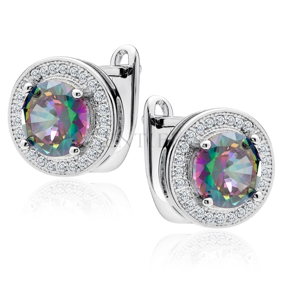 Silver (925) earrings with round multicolor zirconia