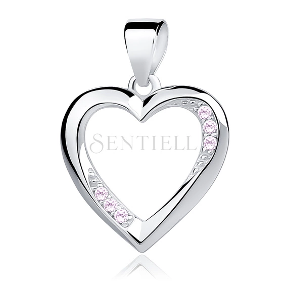 Colgante de corazón de plata de ley 925 con circonita rosa claro