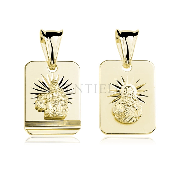 Colgante de Plata de ley 925 chapado en oro Jesucristo / Escapulario María