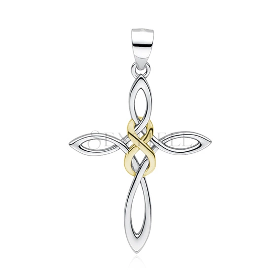 Colgante cruz de plata de ley 925 con símbolo de infinito chapado en oro