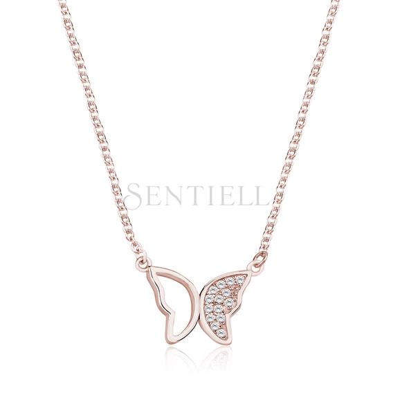 Silver (925) rose gold-plated necklace - butterfly with white zirconias