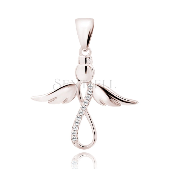 Silver (925) rose gold-plated pendant with white zirconias - angel and infinity sign