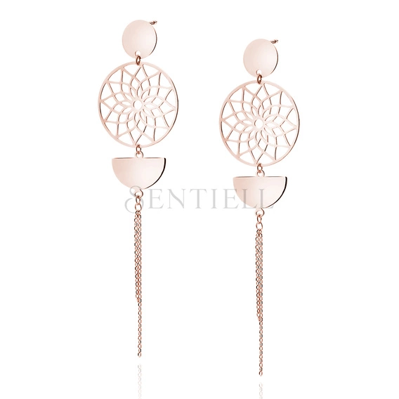 Silver (925) rose gold-plated earrings - mandala with circle, semicircle and chains