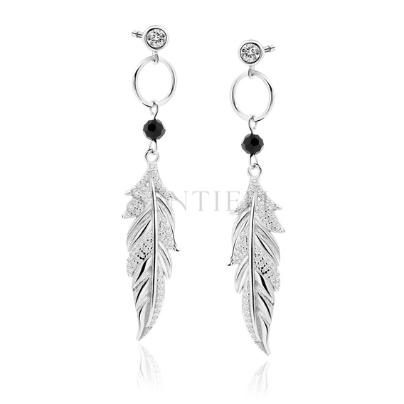 Silver (925) earrings with black spinel and white zirconias - feather
