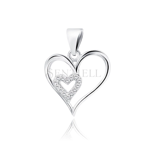 Silver (925) pendant heart with white zirconias