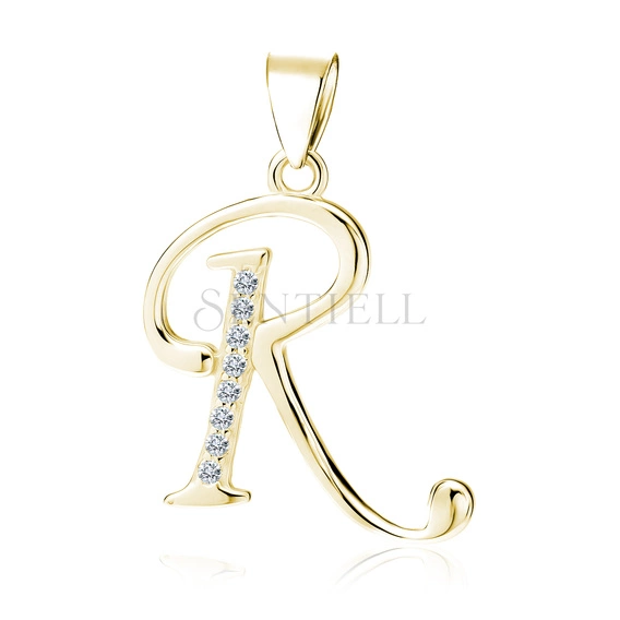 Colgante de plata de ley 925 chapado en oro circonitas blancas - letra R