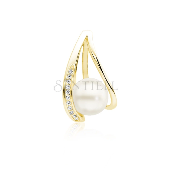 Colgante de perla de plata de ley 925 chapada en oro con circonitas