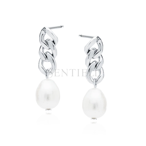 Pendientes de plata de ley 925 - perla en cadena
