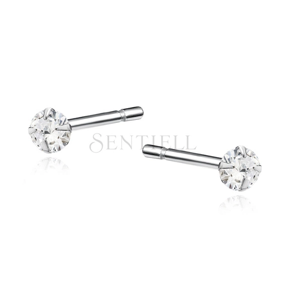 Silver (925) earrings round white zirconia diameter 3mm