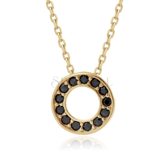 Collar de plata de ley 925 chapado en oro con colgante redondo con circonitas negras