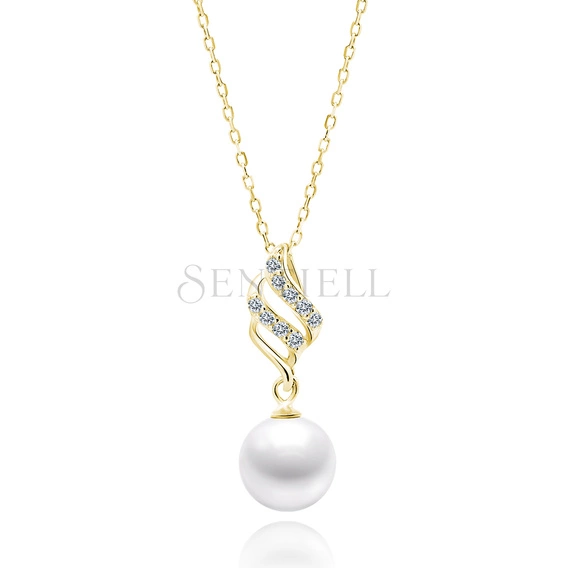 Collar de plata de ley 925 chapado en oro con perla y circonitas blancas