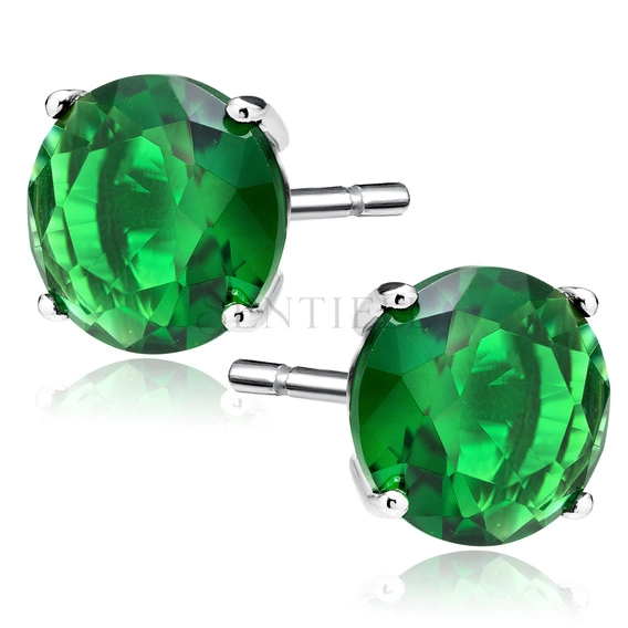 Pendientes de plata de ley 925 con baño de rodio redondos circonita verde diámetro 10 mm