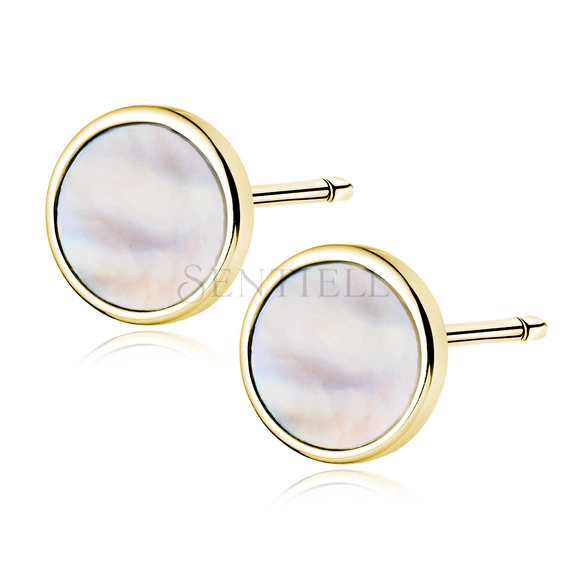 Pendientes redondos de plata de ley 925 chapados en oro con nácar